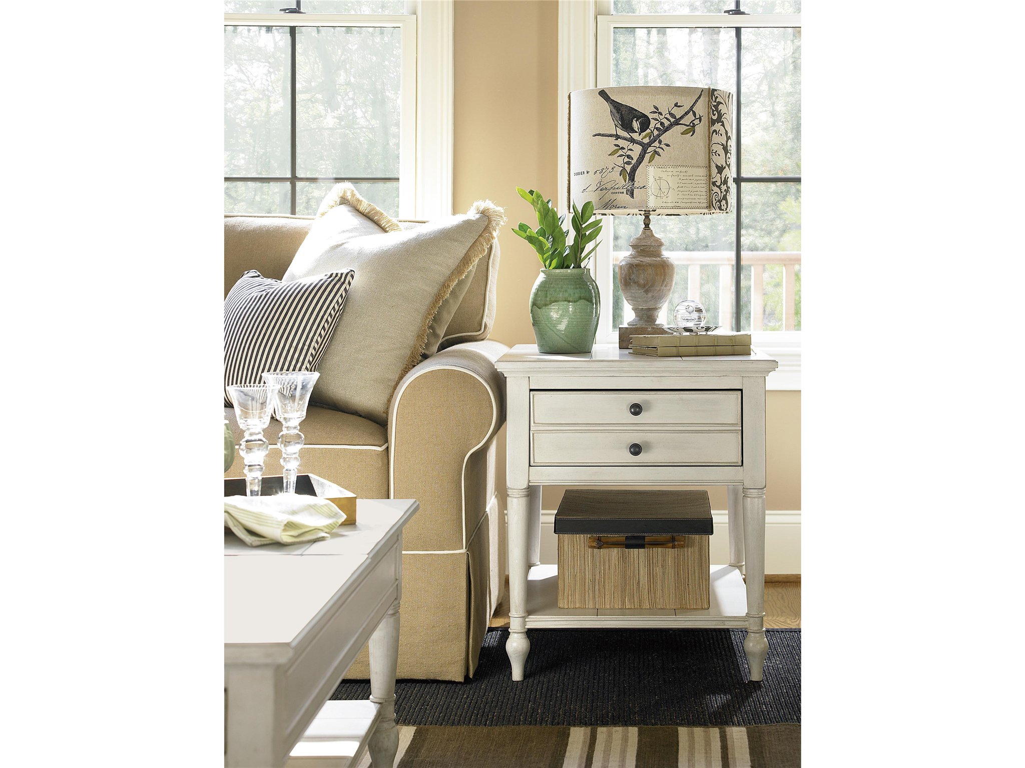 Punctuate a sofa or a favorite chair with the Summer Hill End Table, a timeless furnishing with one drawer and an open-air display shelf.