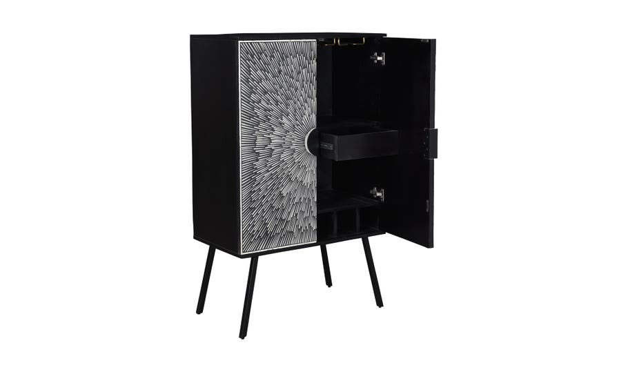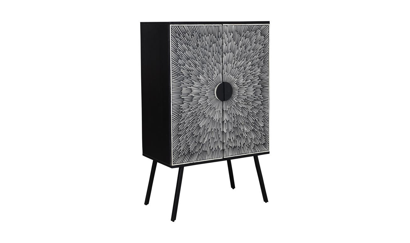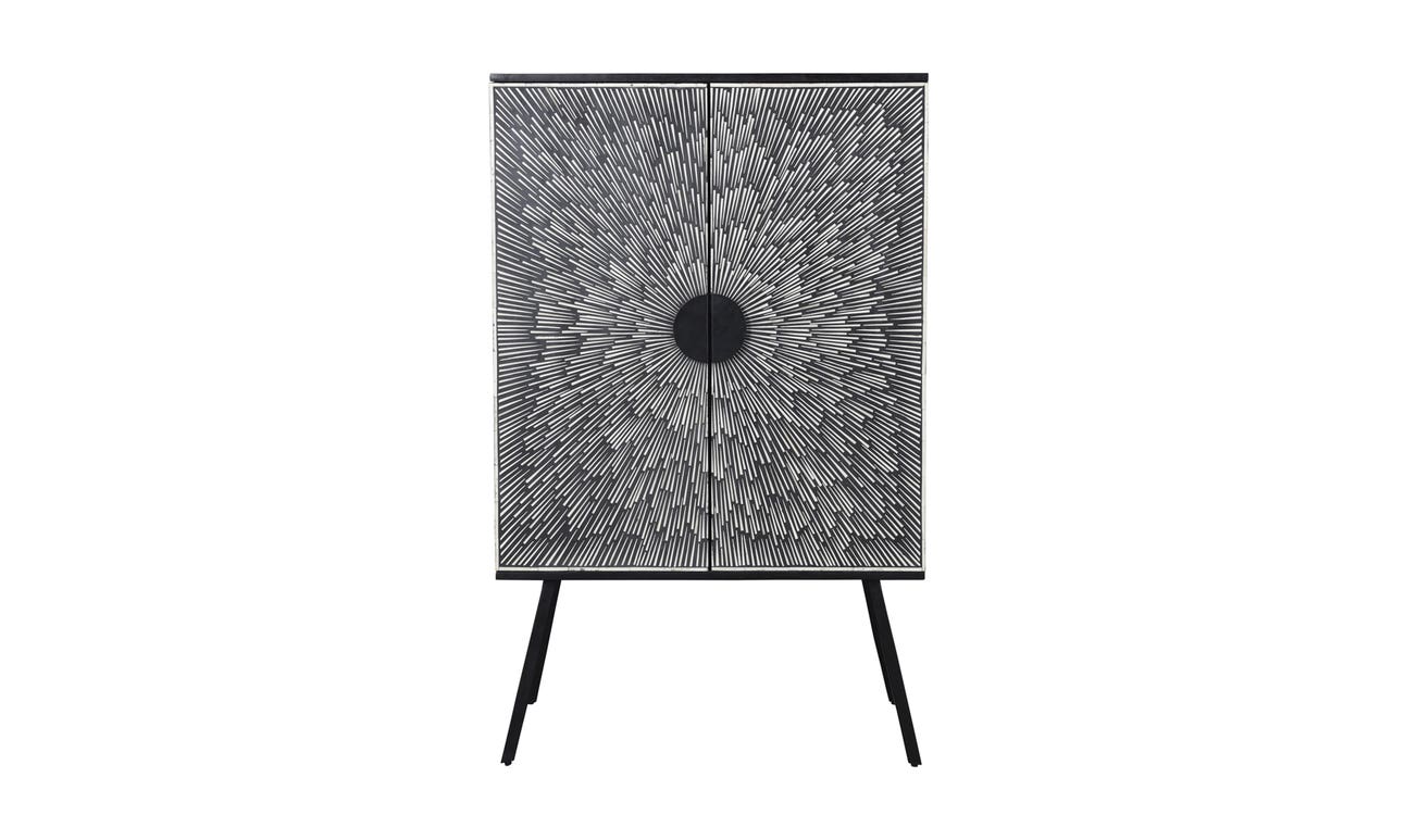 Shine on with the Sunburst wine cabinet. This black-and-white camel bone and resin affair will leave you starstruck every time you reach for a bottle. Two wide swinging doors leave plenty of space for your wine collection.