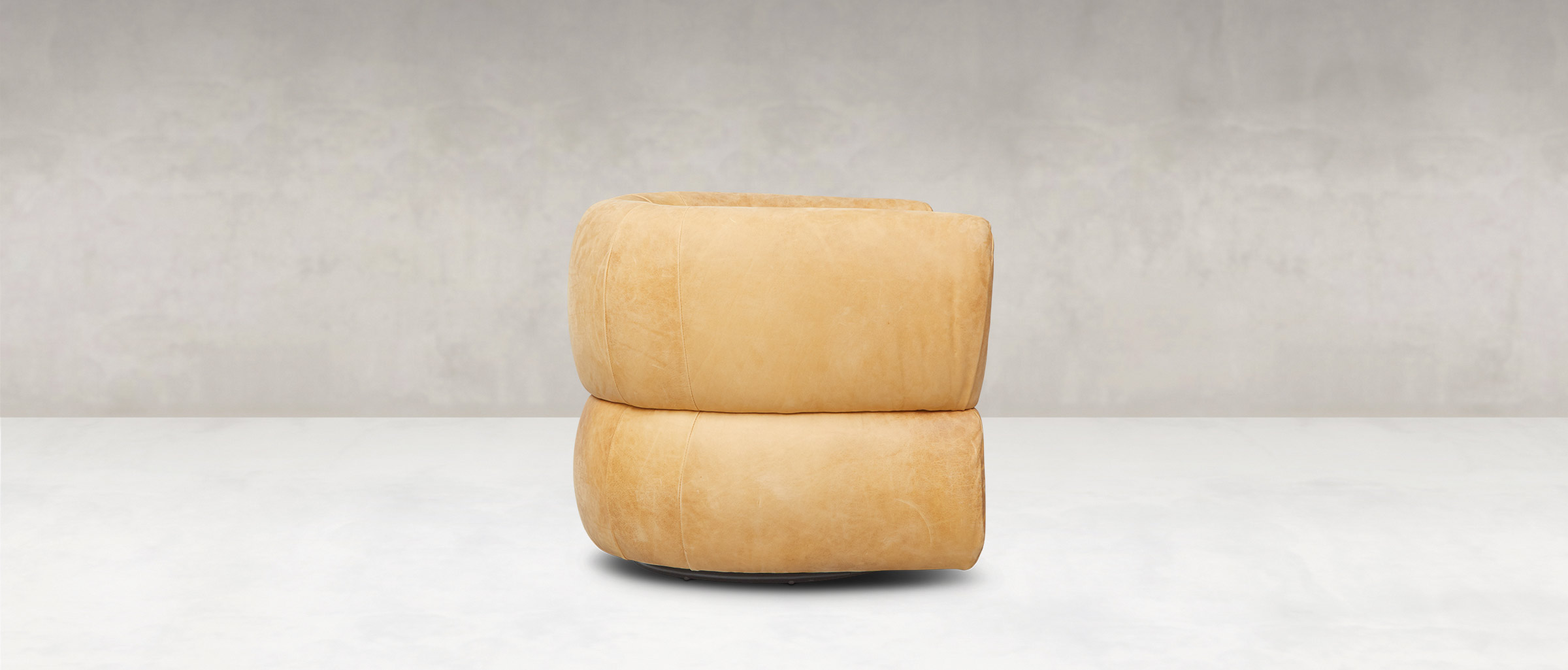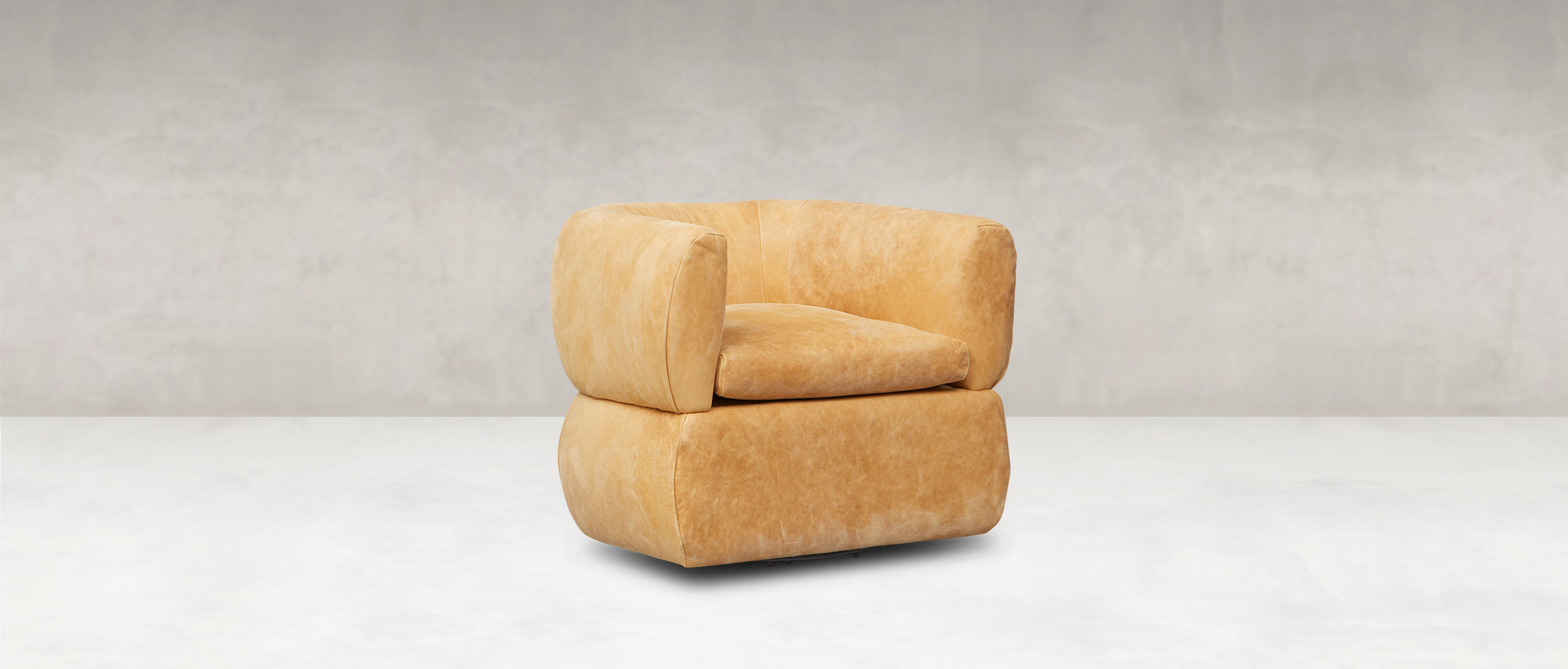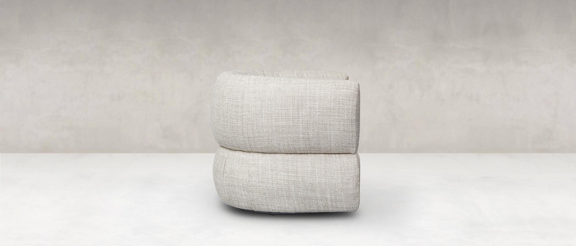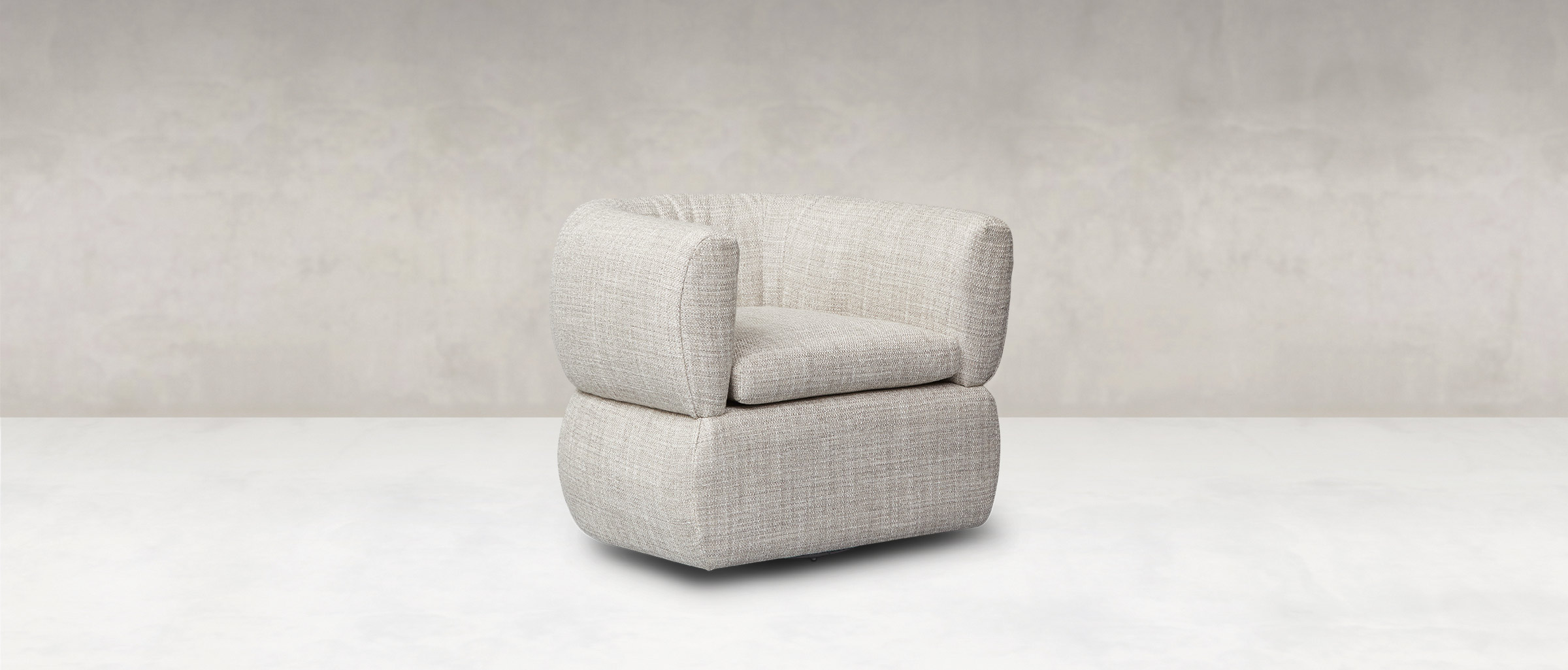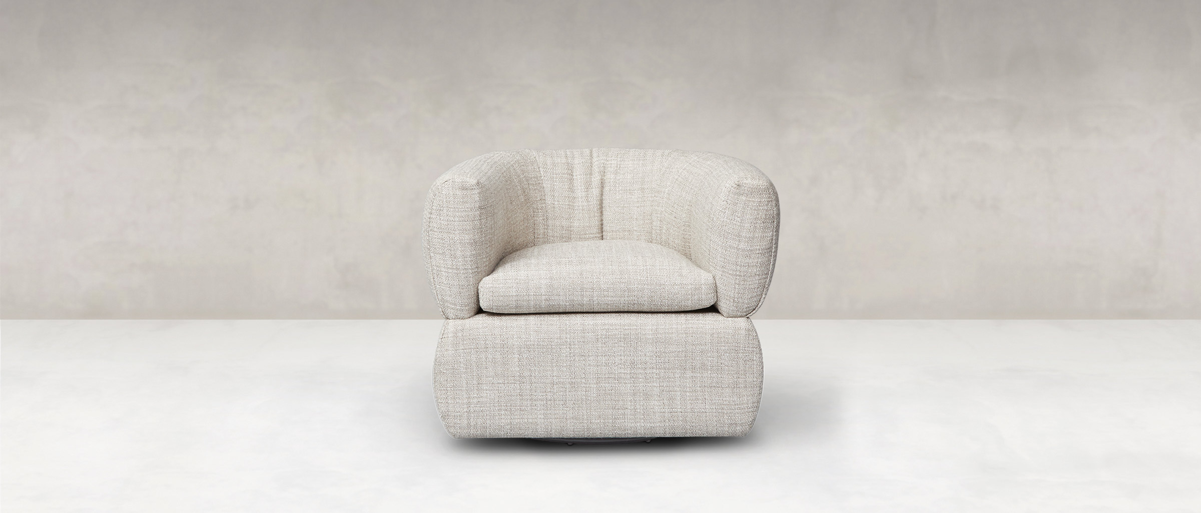 Decorative and comfortable, our soft modern take on the barrel chair can show up perfectly poised on pencil-thin legs or totally relaxed with a broad swivel base. Either way, you’ll find yourself in a wonderfully sumptuous place.