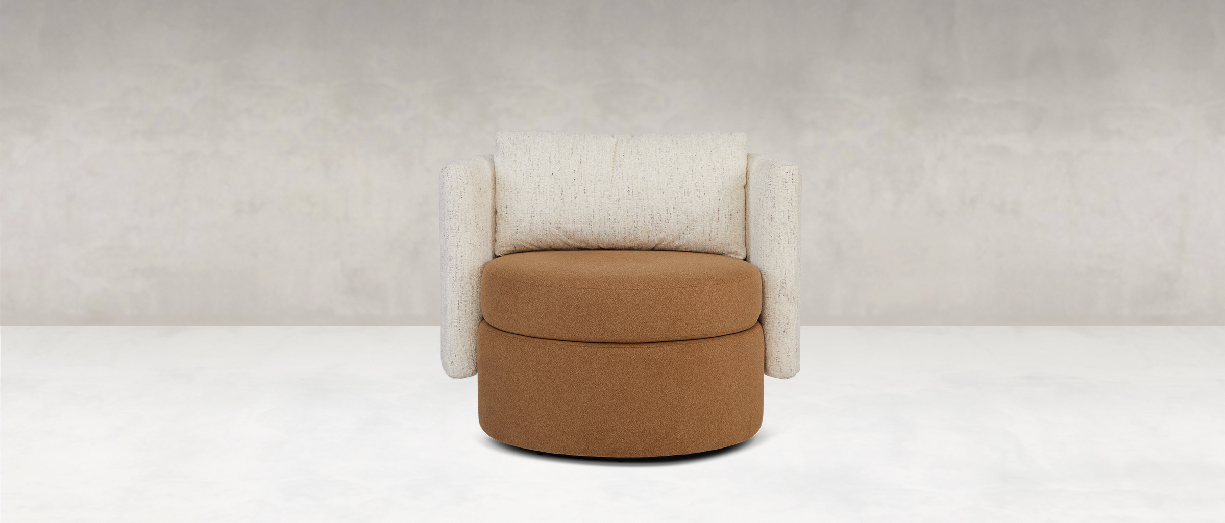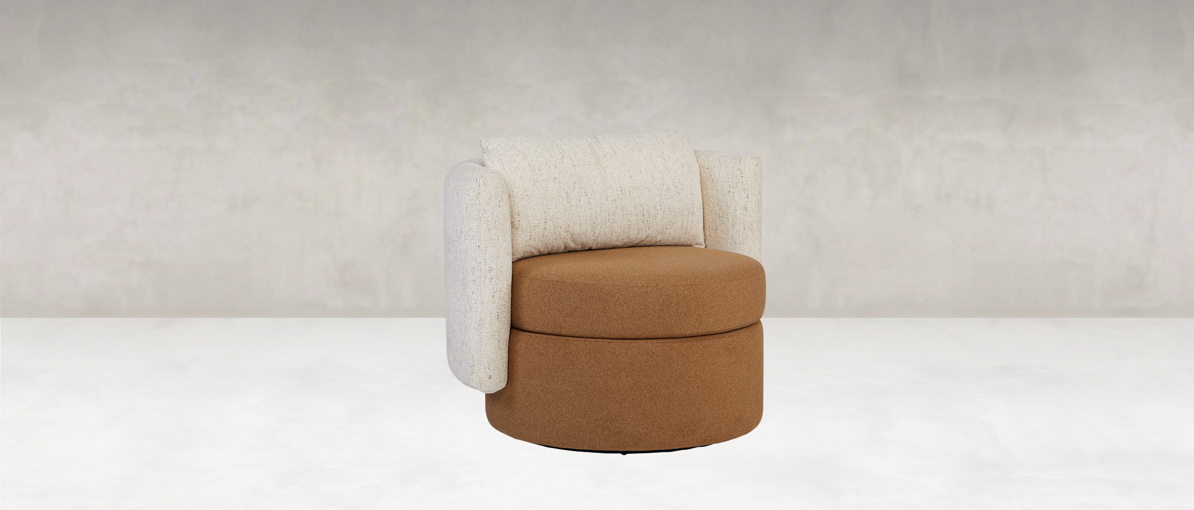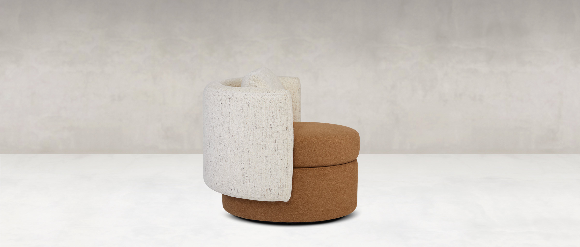 This little swivel chair can add the artful touch of a soft sculpture to your room – just imagine all the possibilities for color, pattern, and texture our fabric options offer – while giving you a great place to perch.