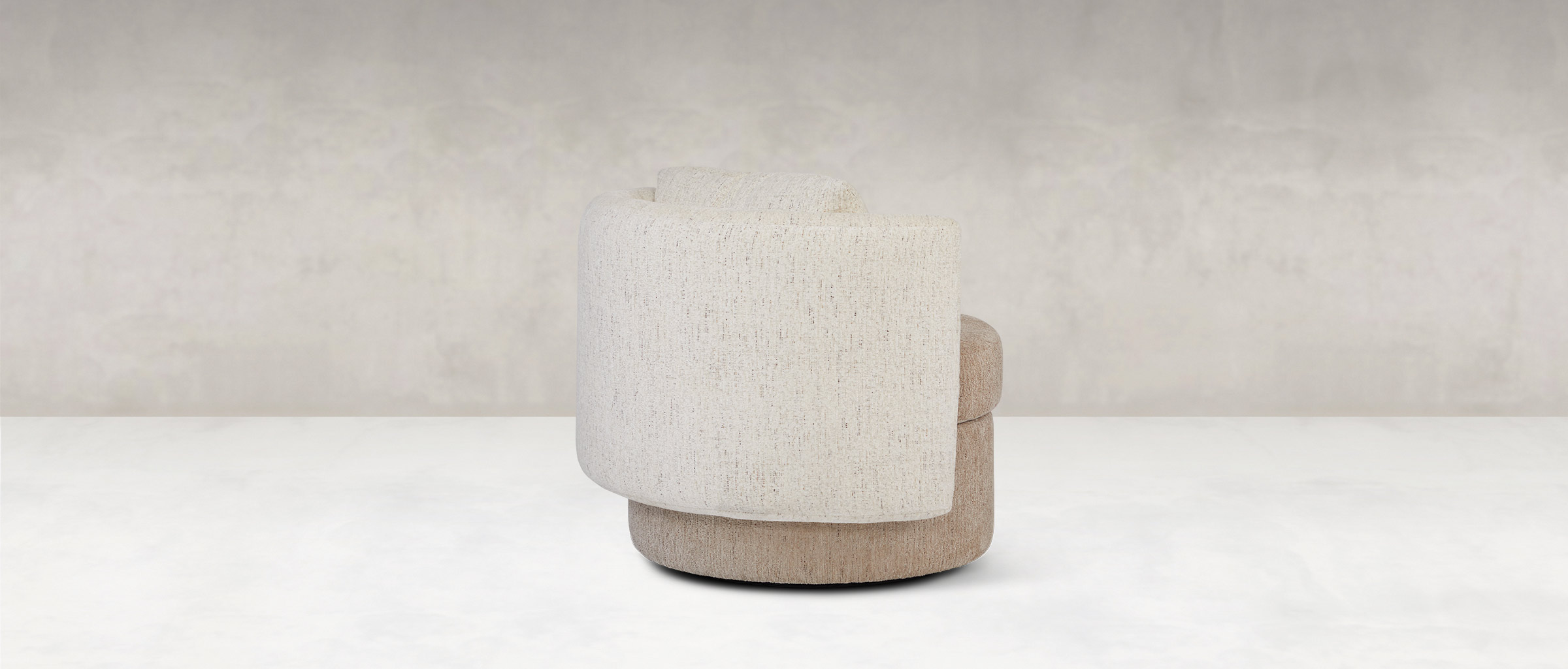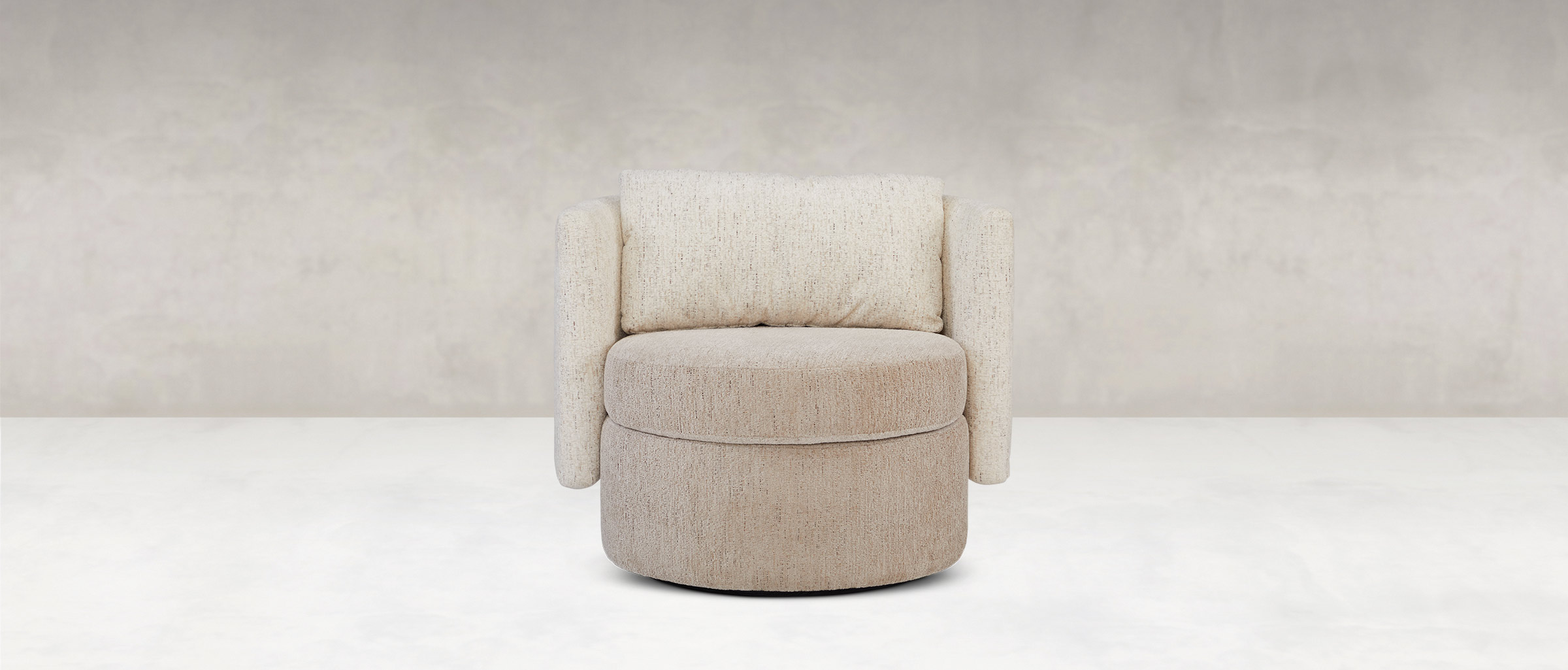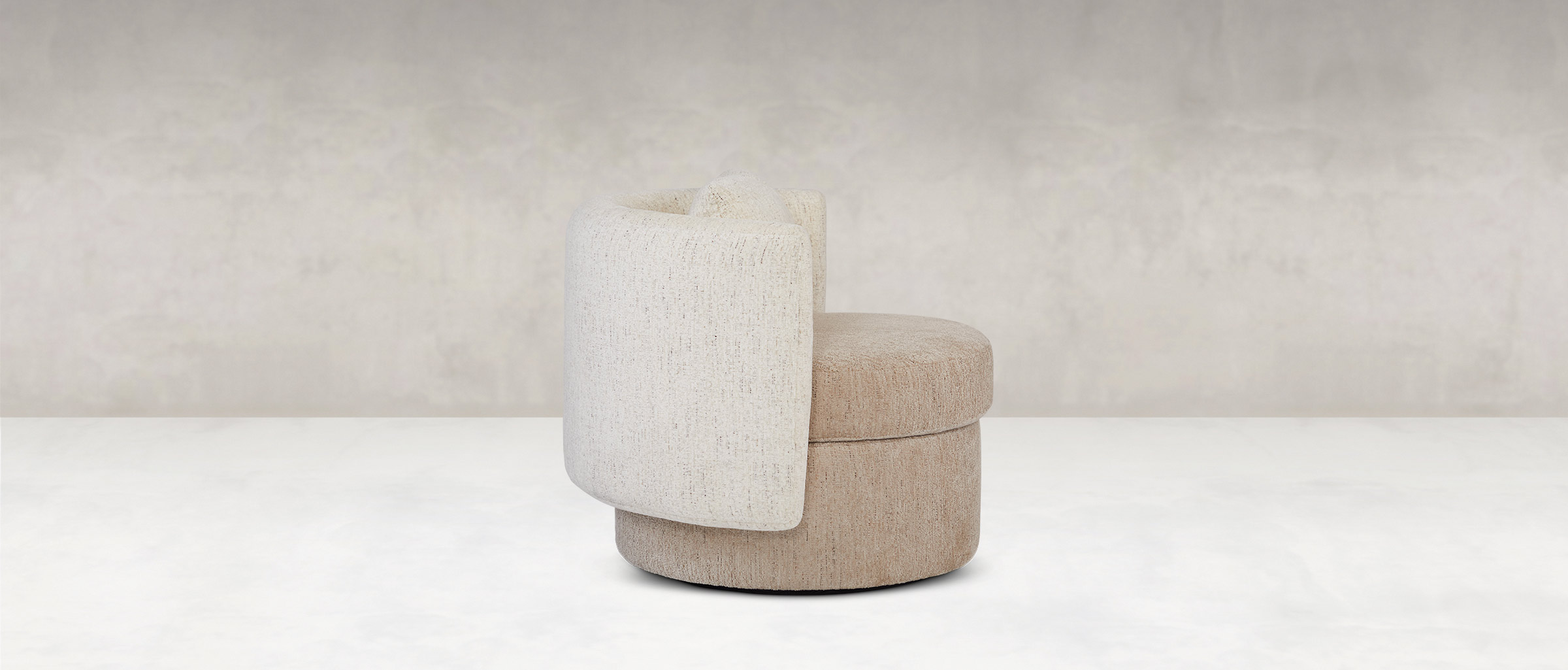 This little swivel chair can add the artful touch of a soft sculpture to your room – just imagine all the possibilities for color, pattern, and texture our fabric options offer – while giving you a great place to perch.