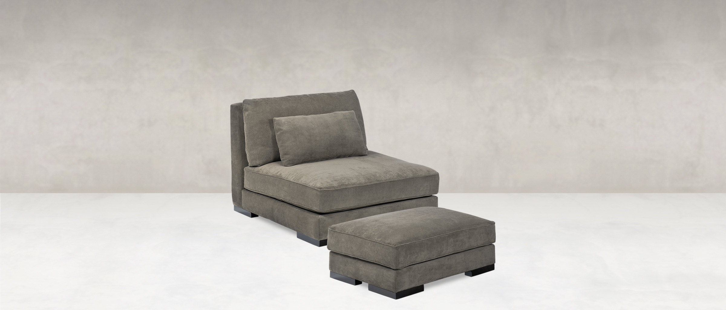 Big, block feet and wide-open bench-style seat cushions create European look and a totally relaxed appeal that makes you just want to, well, chill. And, if you really must have a sofa with arms, you can configure the corner chairs with an armless chair or two – or even the sofa – to create a sublime sectional.