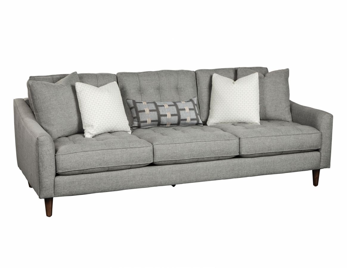 Tapered feet, flared arms, and a tufted back come together to create a look that is unmistakably contemporary and chic. No matter your room’s décor, the Alchemy, offered as both a space-saving condo sofa or a larger estate size, is the perfect elixir for any living space.