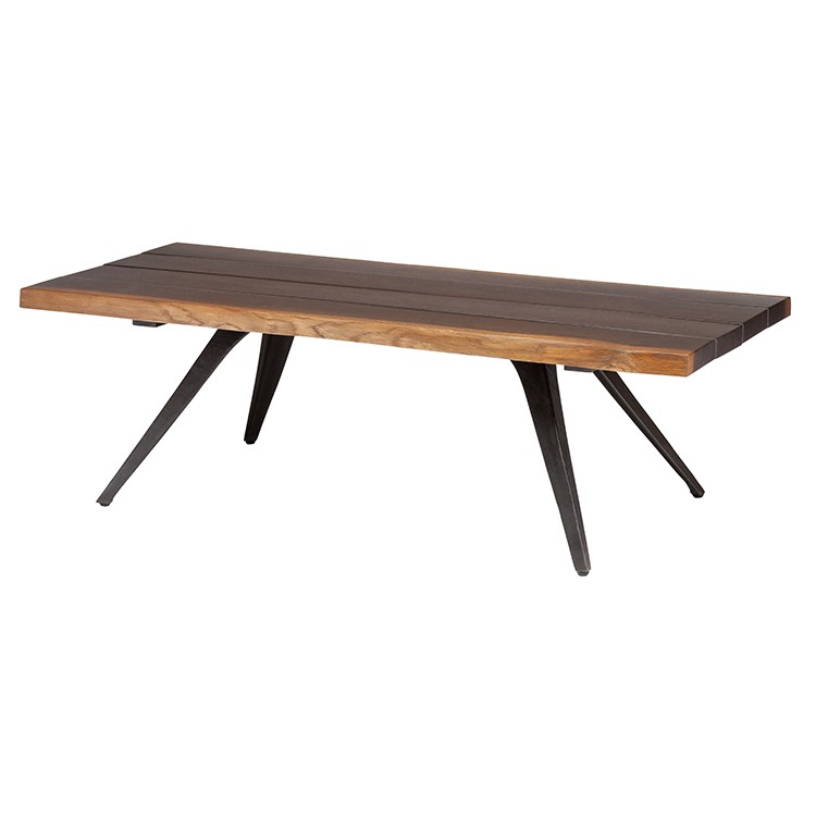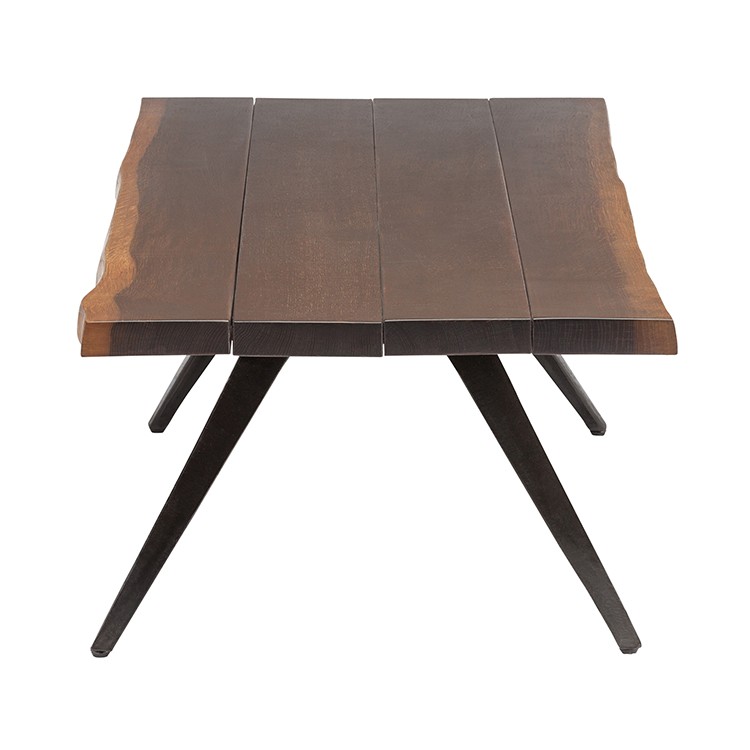 Square Roots sustainable practices philosophy inspires the nature and character of its designs. The Vega coffee table is a fine example of an increasingly popular movement toward organic modernism, defined by live edge solid French oak with brass dovetail detailing and signature flared cast iron legs. The Vega coffee table features solid oak with blackened cast steel legs embracing the spirit of rustic contemporary design.