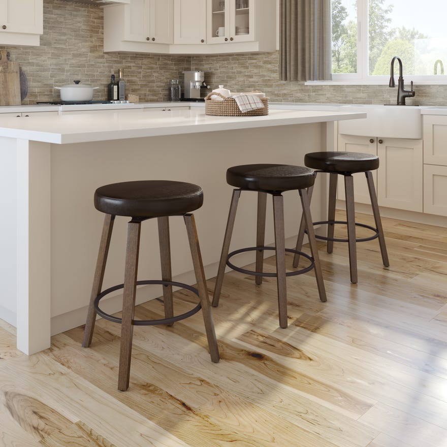 Whether you’re looking to round off seating arrangements for your kitchen island, breakfast counter or bar, the Amisco Walden swivel stool makes the perfect pick for your home. Crafted with a sturdy solid wood frame with metal footrest and a padded, upholstered seat, this round barstool adds chic style to your space. Fashioned with a backless silhouette, this compact barstool is easy to move around and tuck under your kitchen island.