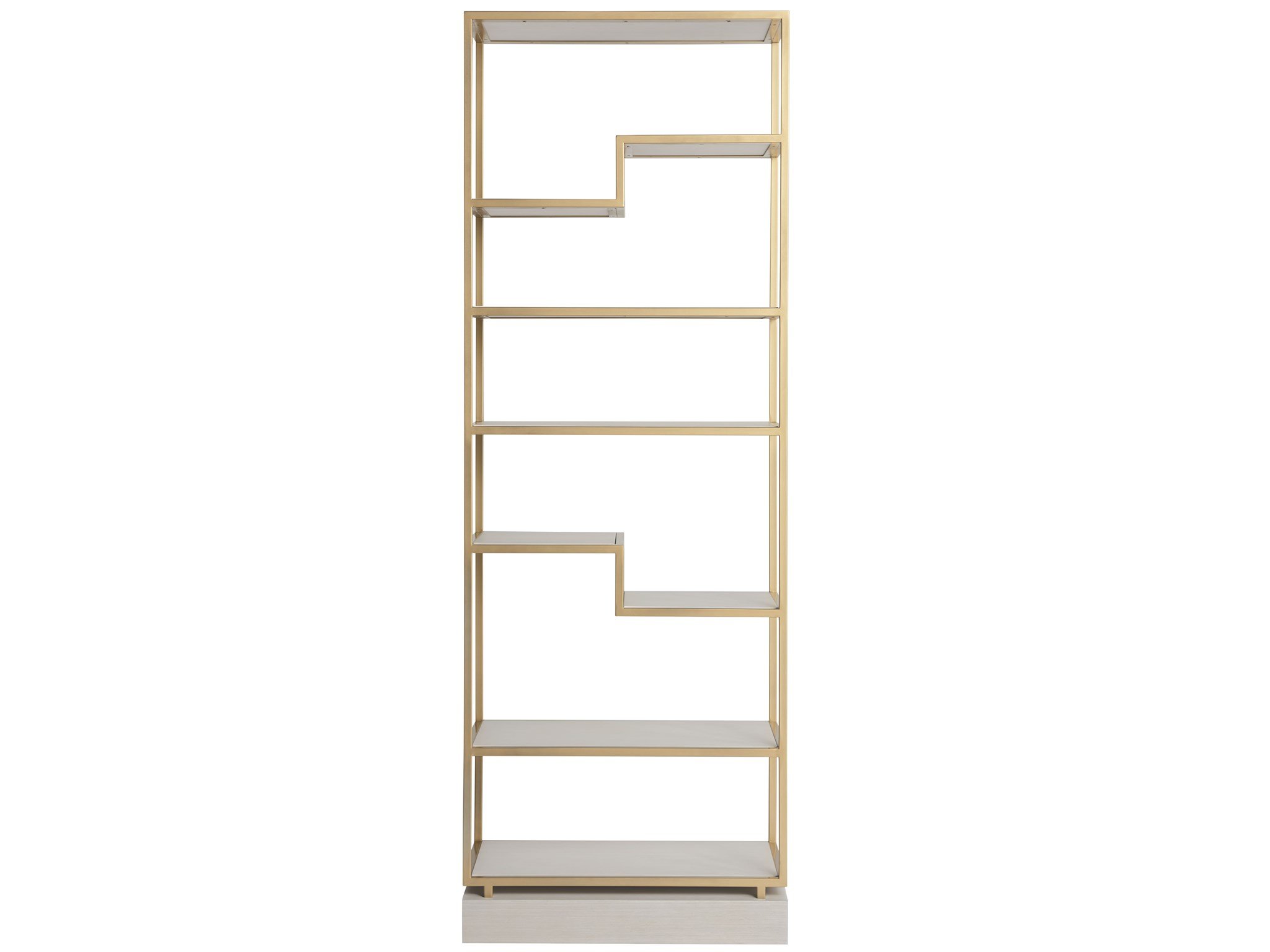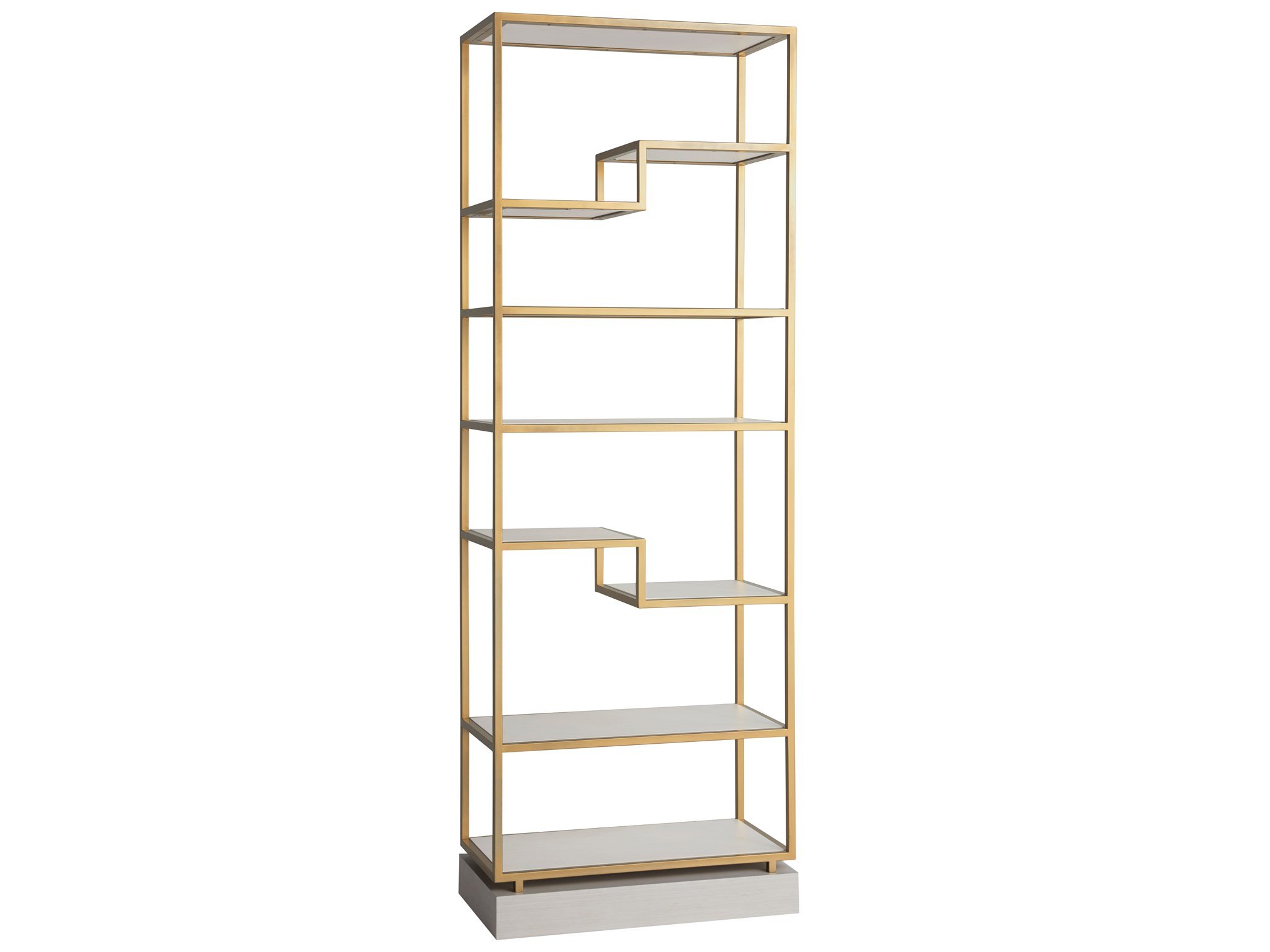 The Windemere Etagere is a gorgeous marriage between function and aesthetic, designed with 8 open-air shelves in an Alabaster finish and a sleek, soft gold metal frame.