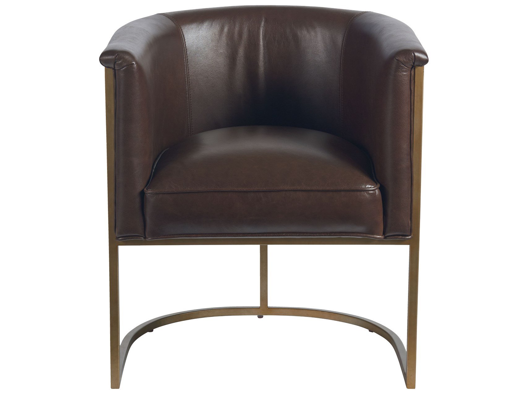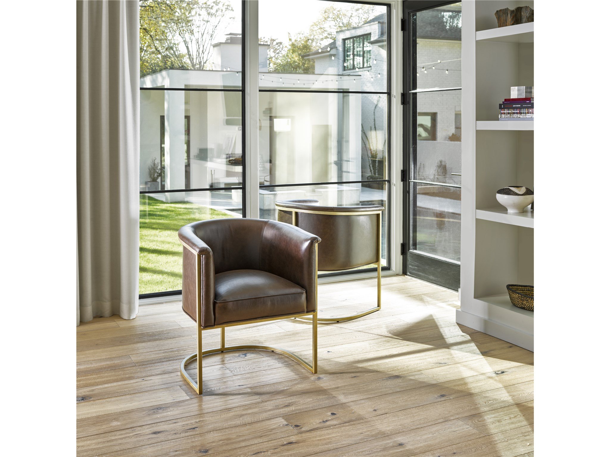 A casual interpretation of a mid-century silhouette, the Wells Accent Chair is a spirited stand-out piece with leather upholstery and a touch of brass.